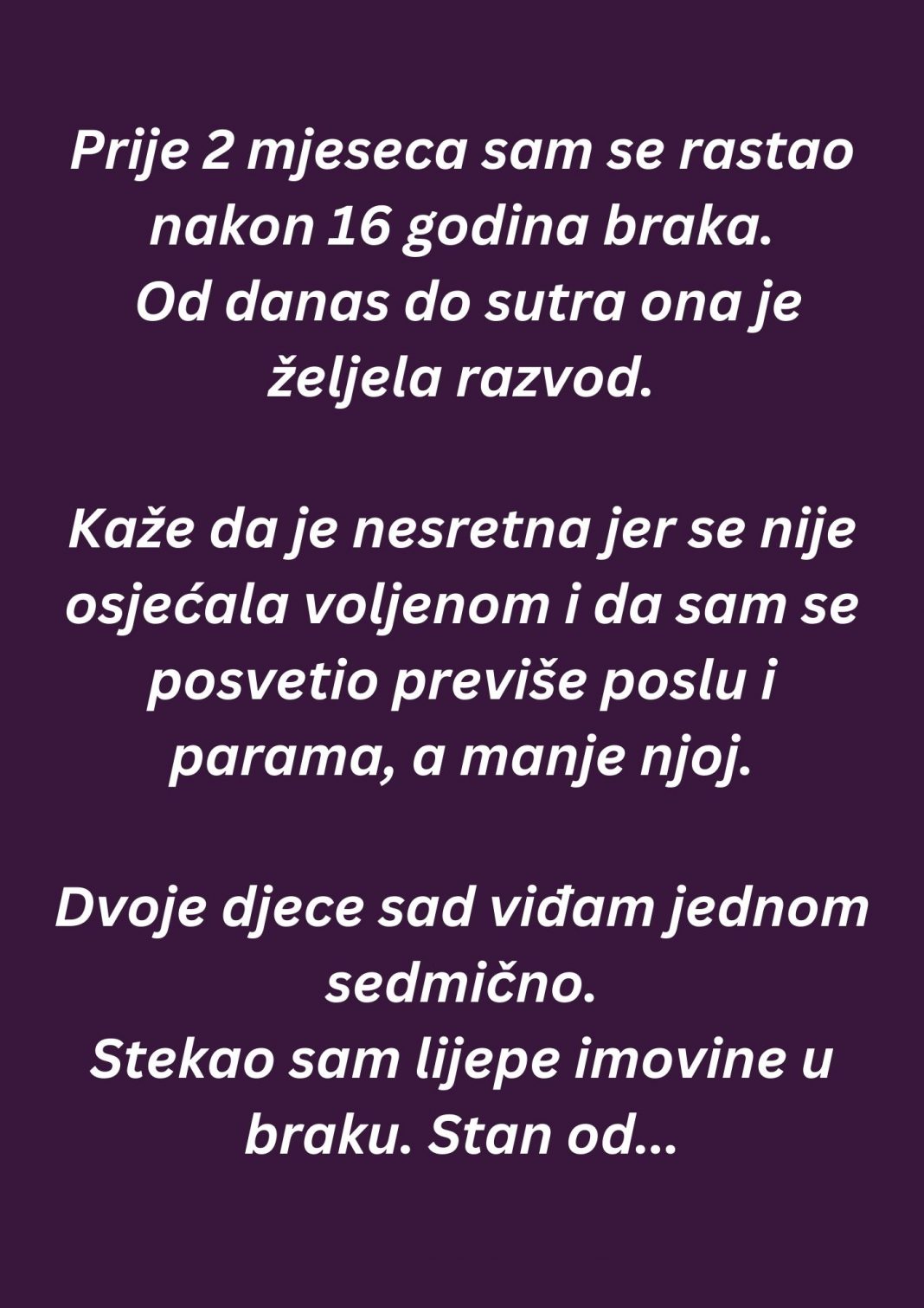 “Prije 2 mjeseca sam se rastao nakon 16 godina braka…” - featured image